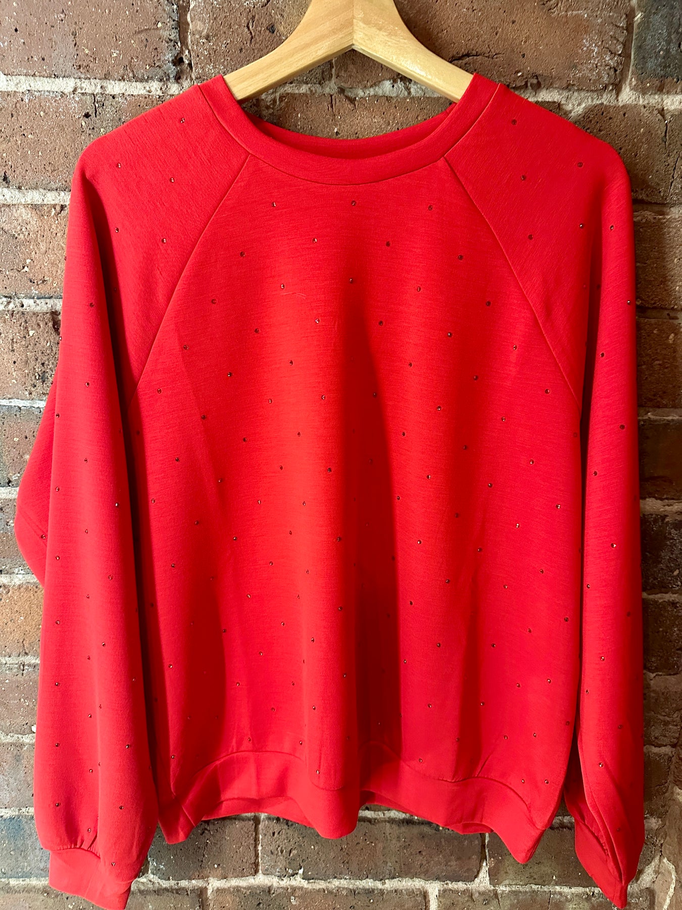 A gorgeous soft feel sweatshirt shape top with diamante studs to match.