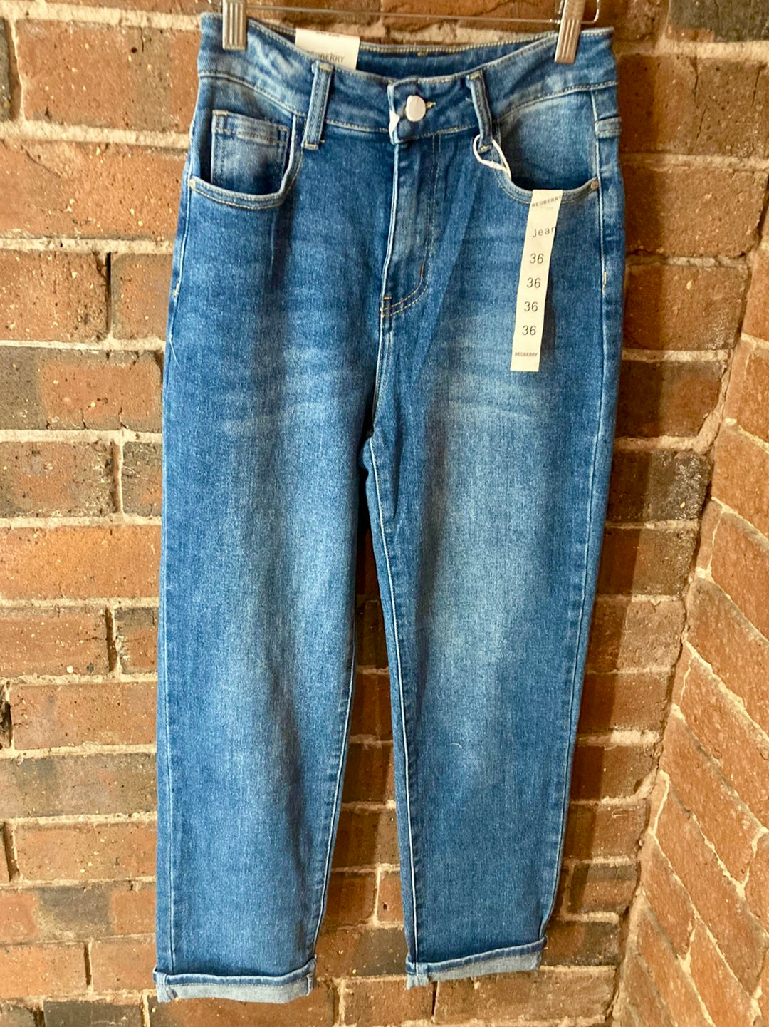 Straight leg blue denim jeans