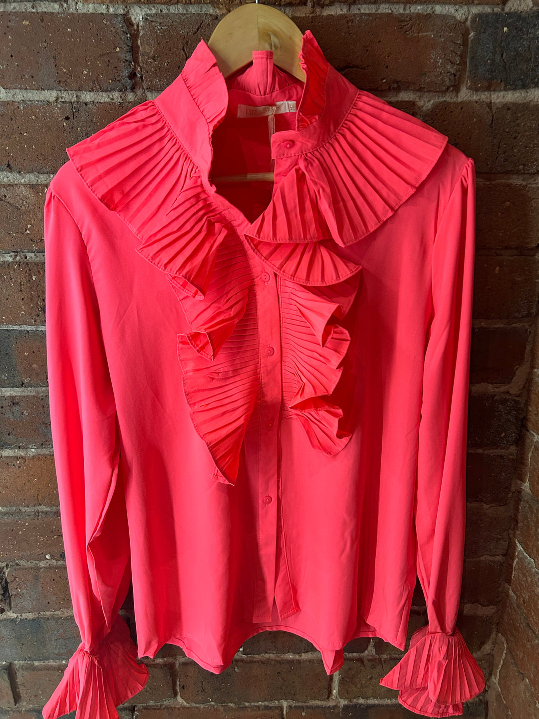 Fluro Coral Long Sleeve Frill Shirt