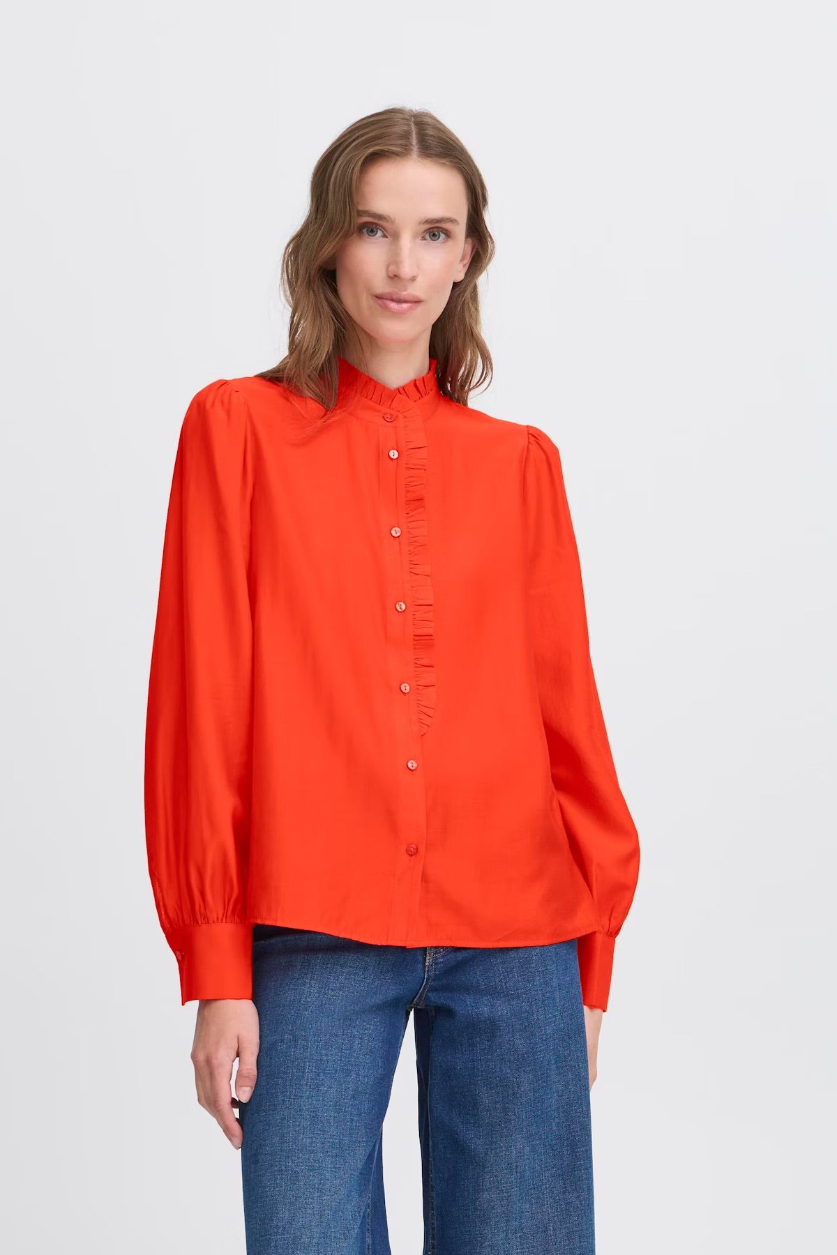 Inject bold color into your wardrobe with the Ihkarlani shirt in vibrant fiery red. Crafted from a soft viscose-polyester blend, it drapes beautifully while maintaining a structured, relaxed fit. Perfect for layering or styling on its own to make a confident, contemporary statement. Machine wash at 40°C.