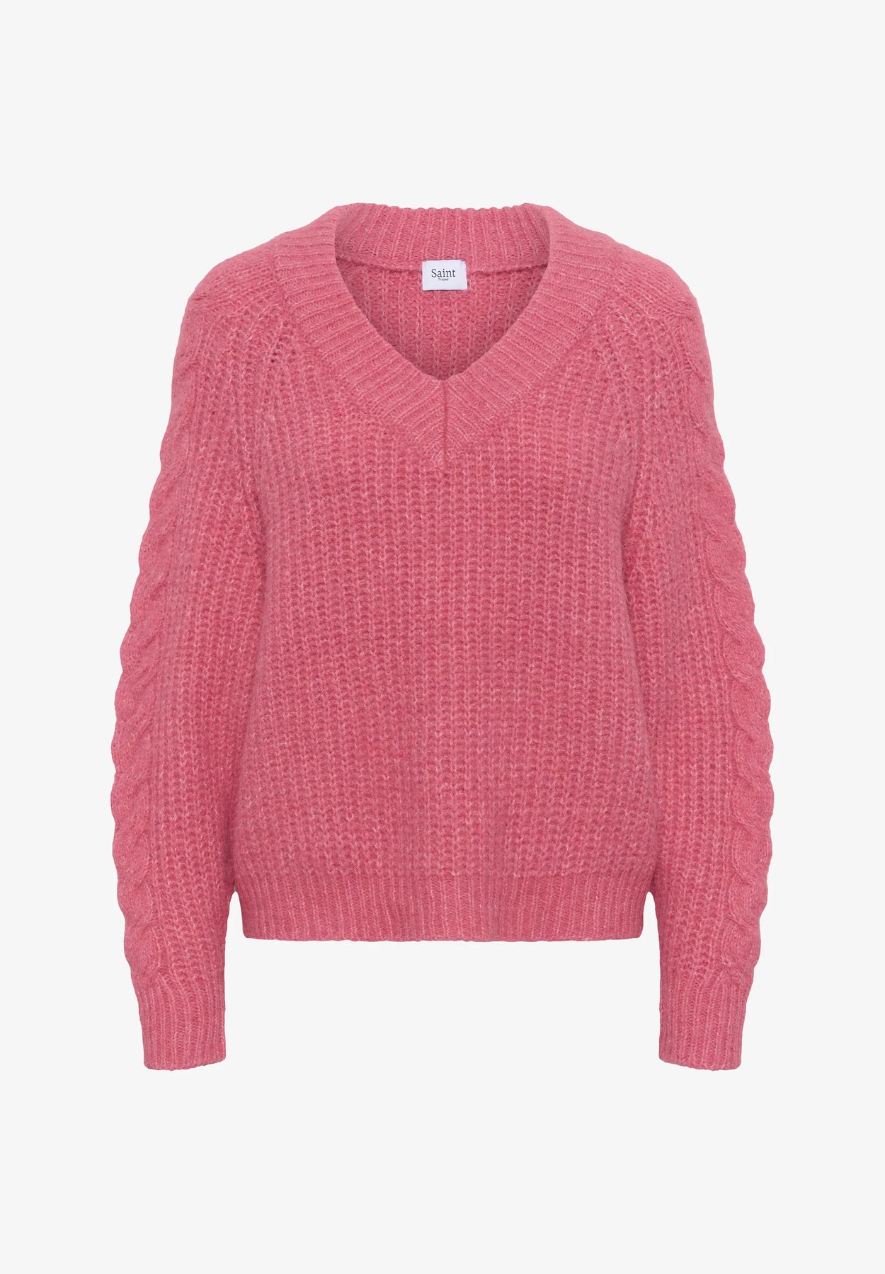 The Manda Jumper by Saint Tropez is a soft polyester-wool-elastane knit with a flattering V-neck, ribbed trims, and relaxed fit. Versatile for everyday wear and easy-care — machine wash at 30°C.